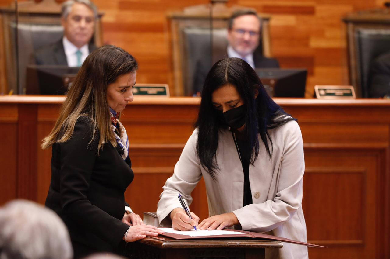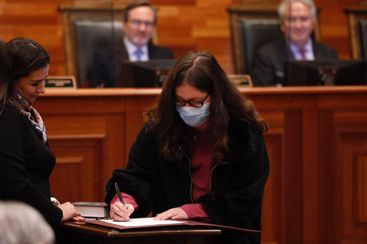 Pasadas las 12:30 horas de este lunes 9 de mayo, por primera vez en la historia de esta alta Magistratura, conjuntamente dos destacadas mujeres abogadas y con amplia experiencia académica, fueron investidas en el cargo de Ministras.