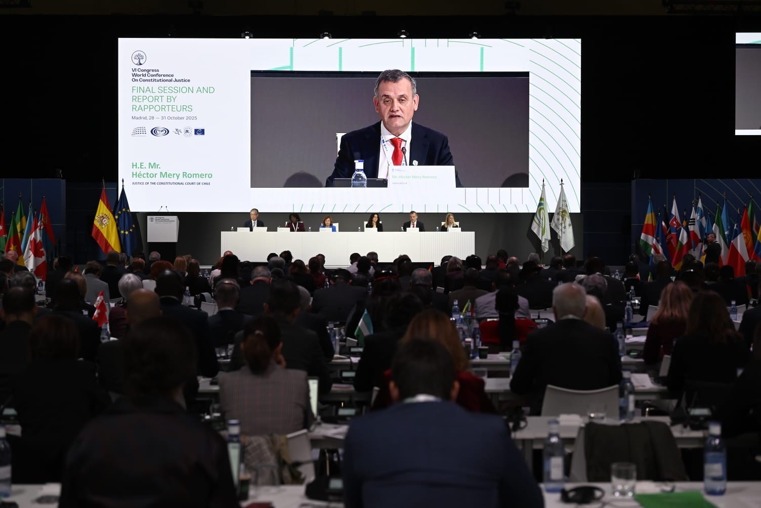 La VI Conferencia Mundial de Justicia Constitucional (WCCJ, por su sigla en inglés), que se desarrolló esta semana en Madrid, concluyó que la dignidad y los derechos de las generaciones futuras es un imperativo constitucional. Los más de 300 participantes, representantes de 85 tribunales y cortes de todos los continentes, se comprometieron a velar por que las decisiones judiciales de hoy no hipotequen las libertades de mañana. El Tribunal Constitucional (TC) de Chile estuvo representado por la Ministra Catalina Lagos Tschorne, el Ministro Héctor Mery Romero y la Ministra Alejandra Precht Rorris.