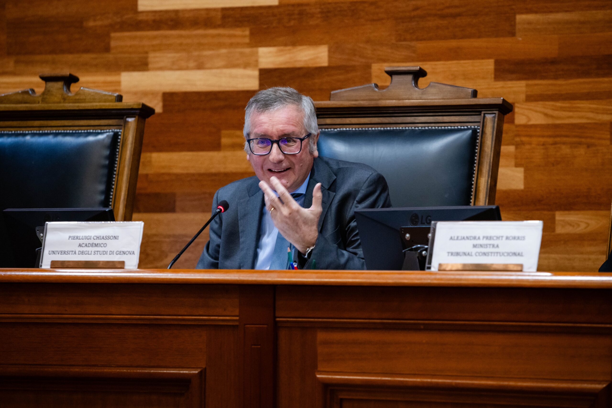 Tras una ronda de preguntas, se desarrolló la Segunda Sesión, cuya moderadora fue la Ministra Alejandra Precht Rorris. Pierluigi Chiassoni, catedrático de Filosofía del Derecho de la Università degli studi di Genova, abordó la importancia de la argumentación racional como límite y garantía frente a la discrecionalidad judicial. Planteó que las decisiones constitucionales deben ser el resultado de una justificación pública, transparente y fundada en razones comprensibles, lo que fortalece la legitimidad del Tribunal Constitucional. En este sentido, destacó la necesidad de una metodología interpretativa que combine rigor analítico, coherencia interna y sensibilidad hacia los valores constitucionales, permitiendo equilibrar la fidelidad al texto con la responsabilidad institucional del intérprete en un Estado de derecho. En concreto, propuso la noción de “código metodológico”, como una noción puente entre consideraciones técnicas y ético-normativas, códigos que tienen por objeto abordar problemas clasificatorios, interpretativos, de identificación e integración de lagunas, y de identificación y solución de antinomias de orden constitucional. Durante su alocución, afirmó que “un código metodológico está bien construido cuando es un conjunto finito, coherente y completo de instrucciones, de forma que, al utilizar este conjunto, quien lo use siempre puede llegar a una sola solución, presentándola como jurídicamente correcta”.