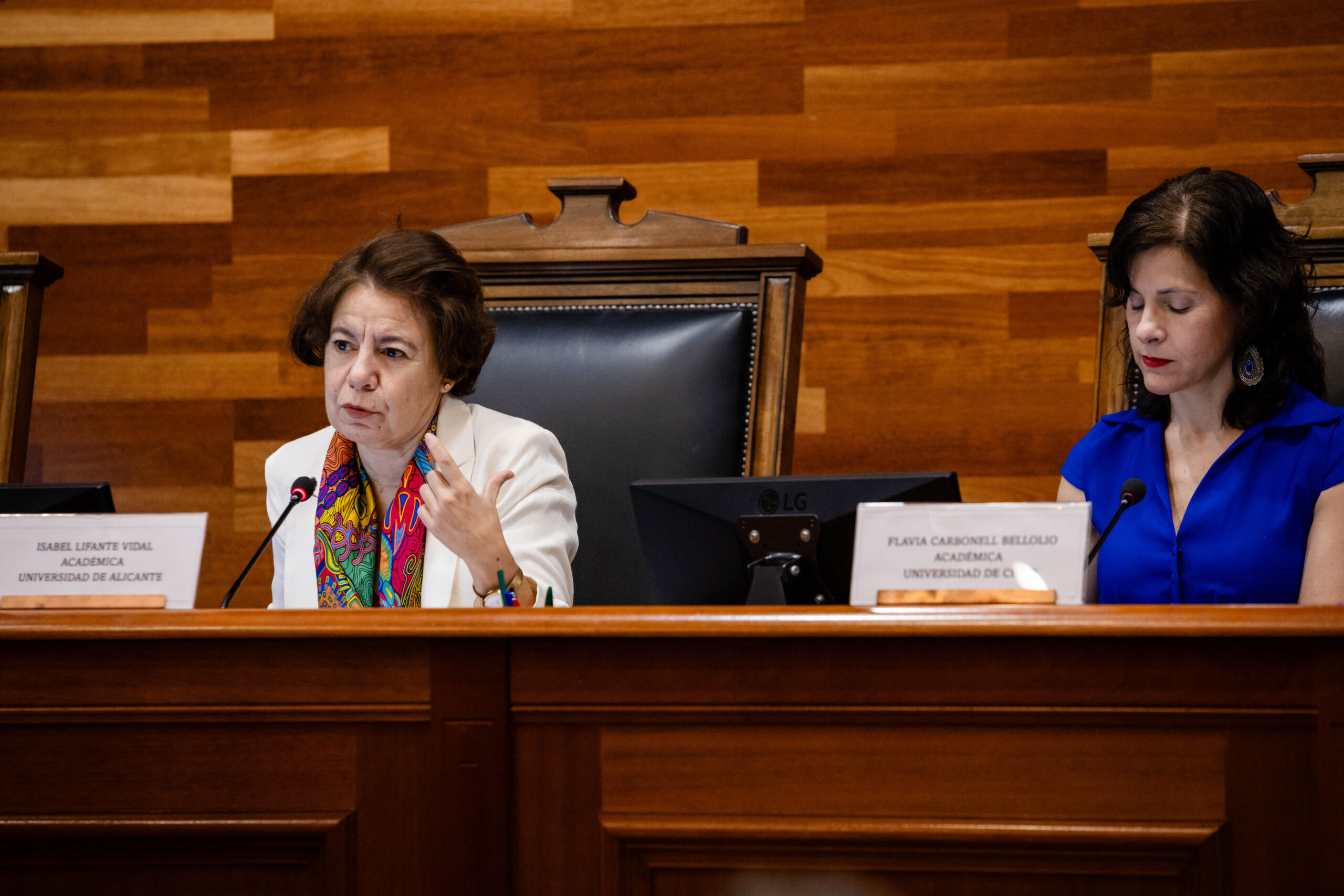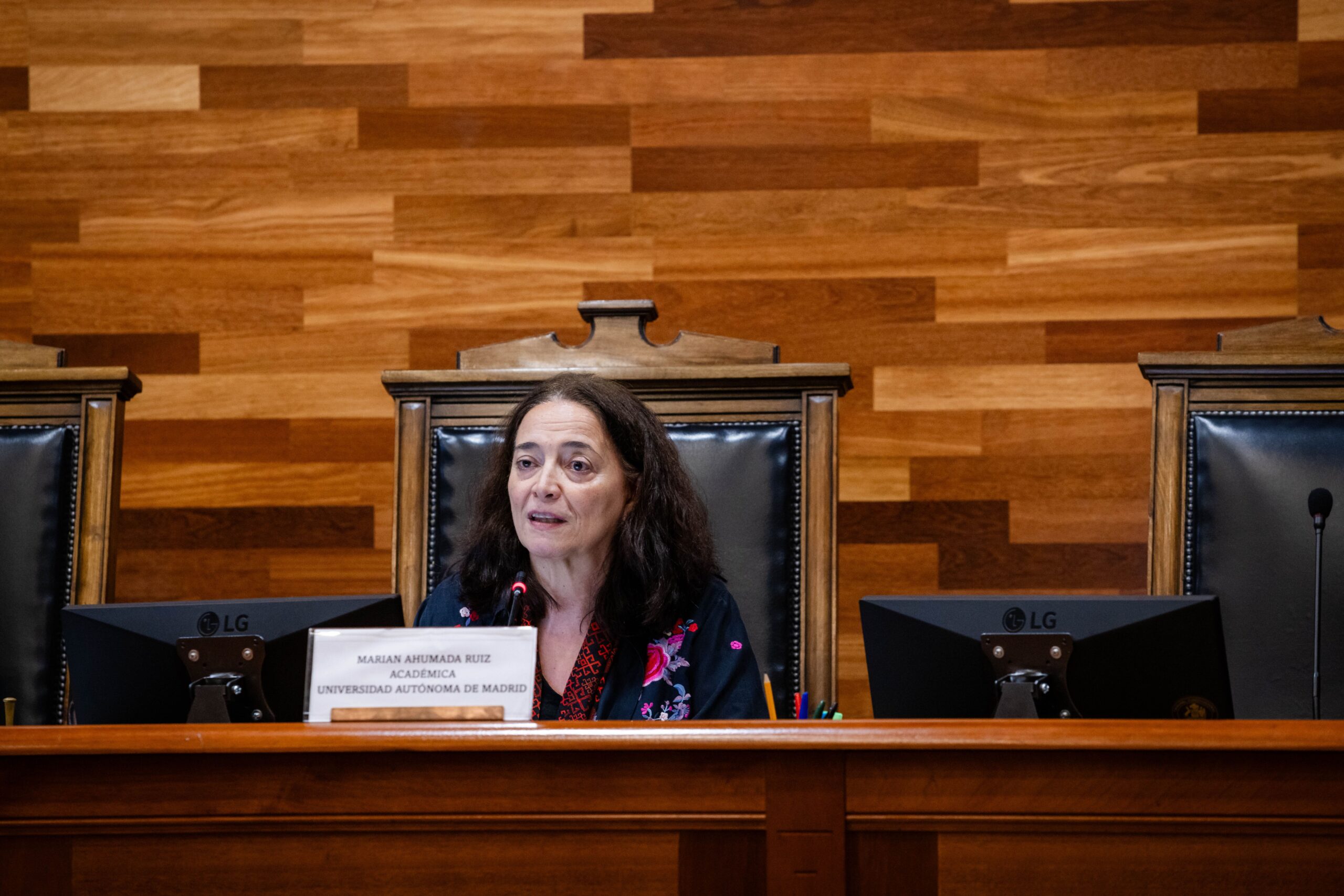 A continuación, fue el turno de Marian Ahumada Ruiz, catedrática de Derecho Constitucional en la Universidad Autónoma de Madrid, cuya presentación se tituló “Inconstitucionalidad sin nulidad, sentencias interpretativas y legislación judicial”. En su exposición, se basó en la jurisprudencia del Tribunal Constitucional español para ilustrar problemas y cuestiones a propósito de la interpretación que la jurisdicción constitucional puede fijar sobre las leyes que se le someten a control. Al respecto, se centró en el problema de la interpretación de las normas, en particular las leyes, de forma armónica con la constitución, que plantea una serie de cuestiones que, según ella, afectan a la definición de la justicia constitucional, cuál es realmente su ámbito de actuación −especialmente, en relación con jueces ordinarios− y hasta dónde llega lo que es función judicial y cuándo empieza la legislación. En su presentación, sostuvo que “las sentencias interpretativas son un tipo de sentencia que no estaba prevista en las legislaciones típicas de regulación de tribunales constitucionales y es una hija de la necesidad. Prácticamente, se puede decir que en cualquier jurisdicción constitucional aparecen las sentencias interpretativas, pero, por una cuestión de necesidad, de no provocar motivos de regulación y de tener un enfoque práctico, de tribunales constitucionales que deben solucionar problemas y no crearlos”.