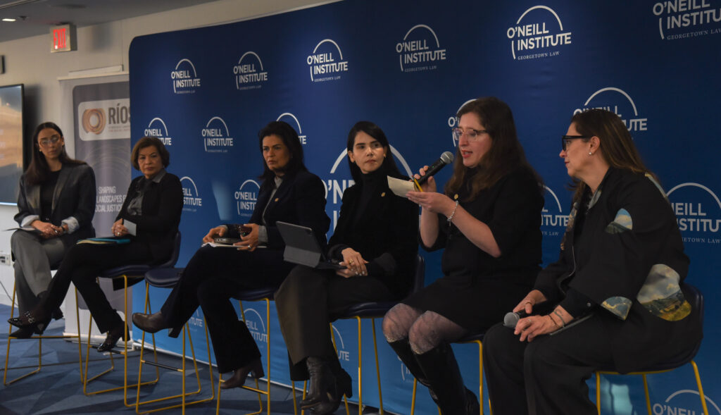 En el primer día del foro, también realizado en la Facultad de Derecho de la Universidad de Georgetown, se trató el Diálogo Temático: No regresividad y protección de la salud y derechos relacionados. En él, intercambiaron visiones y conocimientos el asesor de la Oficina del Alto Comisionado de las Naciones Unidas para los Derechos Humanos, Christian Courtis, y las magistradas Natalia Ángel Cabo (Corte Constitucional de Colombia), Army Ferreira Reyes (Corte Constitucional de República Dominicana) y Rubenia Galeano Barralga (Corte Suprema de Justicia de Honduras).