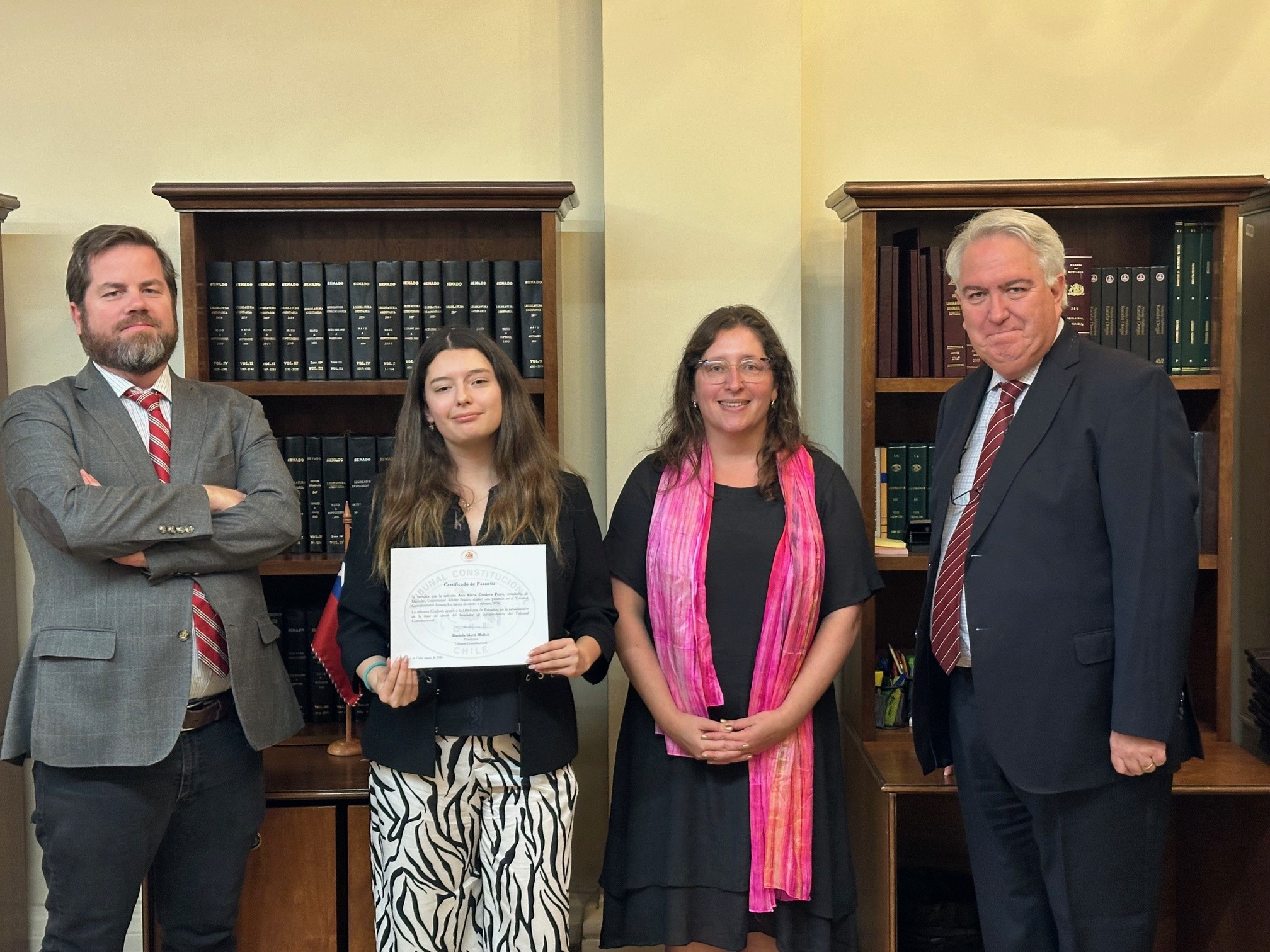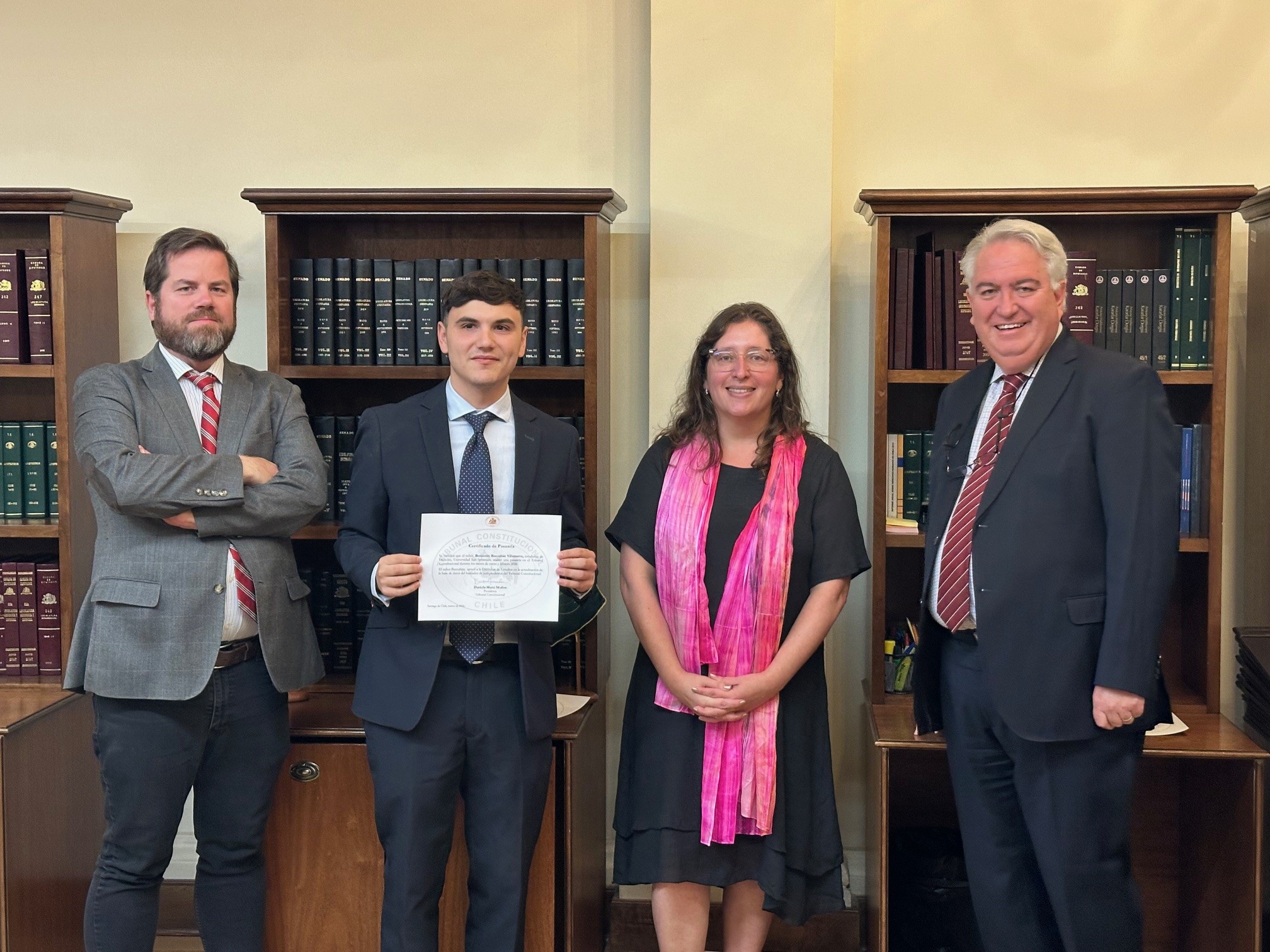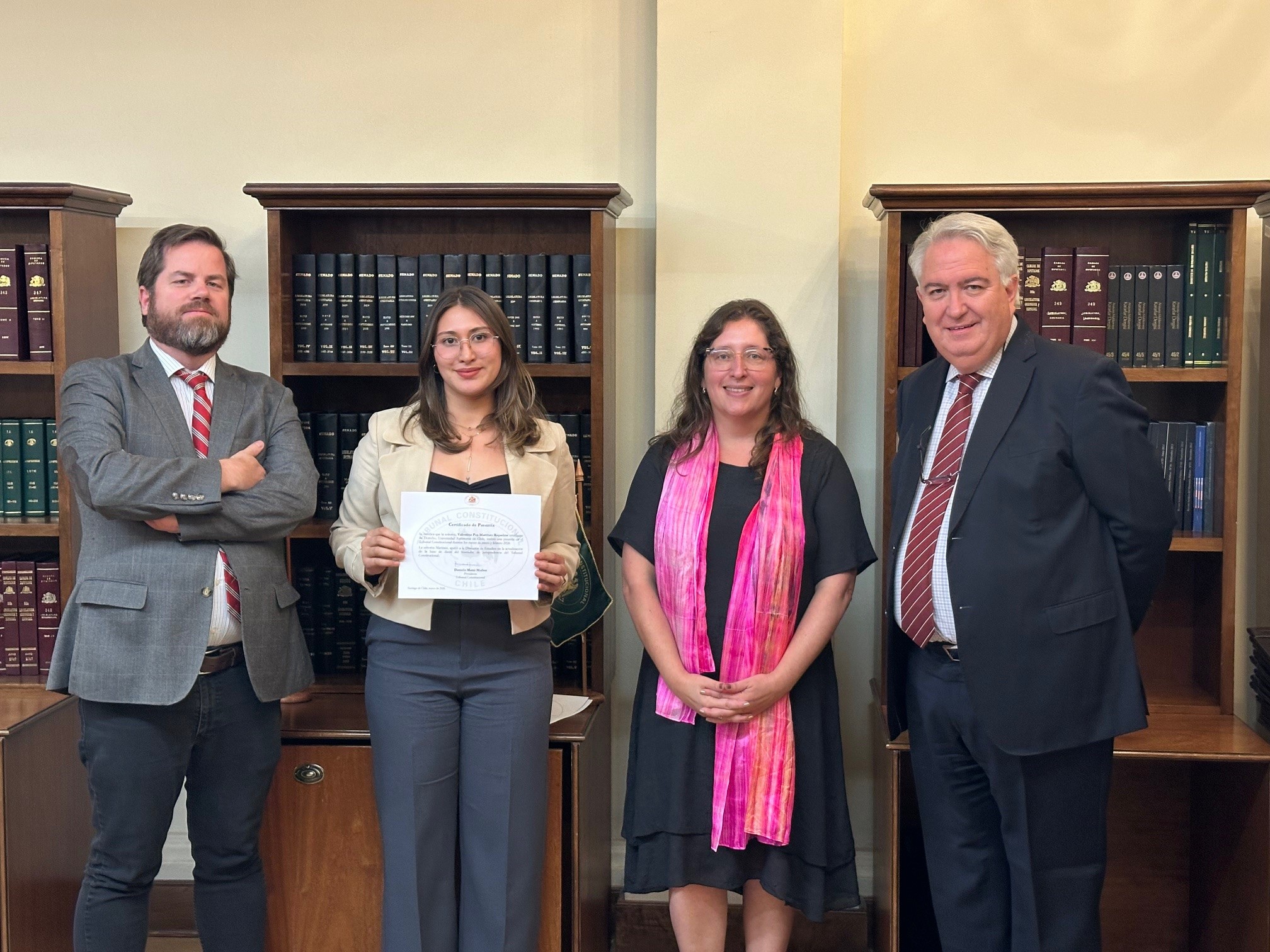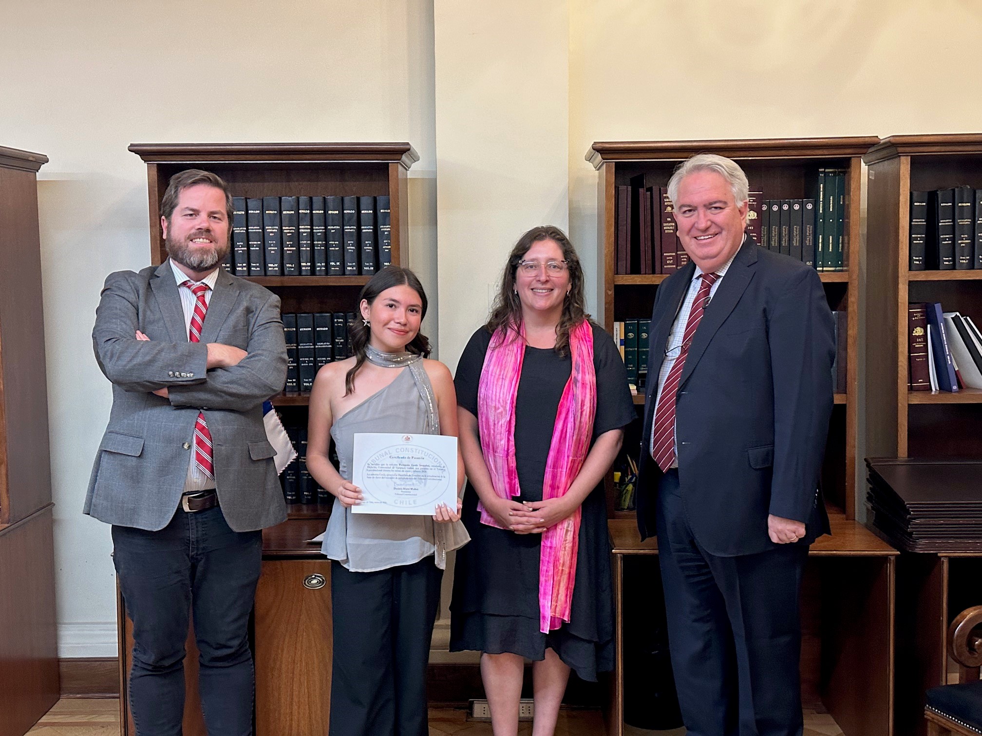 El lunes 16 de marzo se llevó a cabo la ceremonia de certificación de las pasantías de verano 2026 correspondientes a la Dirección de Estudios y al área de Comunicaciones del Tribunal Constitucional. El acto contó con la participación de la Presidenta de la Magistratura, Daniela Marzi, el Ministro Miguel Ángel Fernández, el Director de Estudios, Manuel Puccio, y los 14 estudiantes que finalizaron su período de pasantía con sistema híbrido.