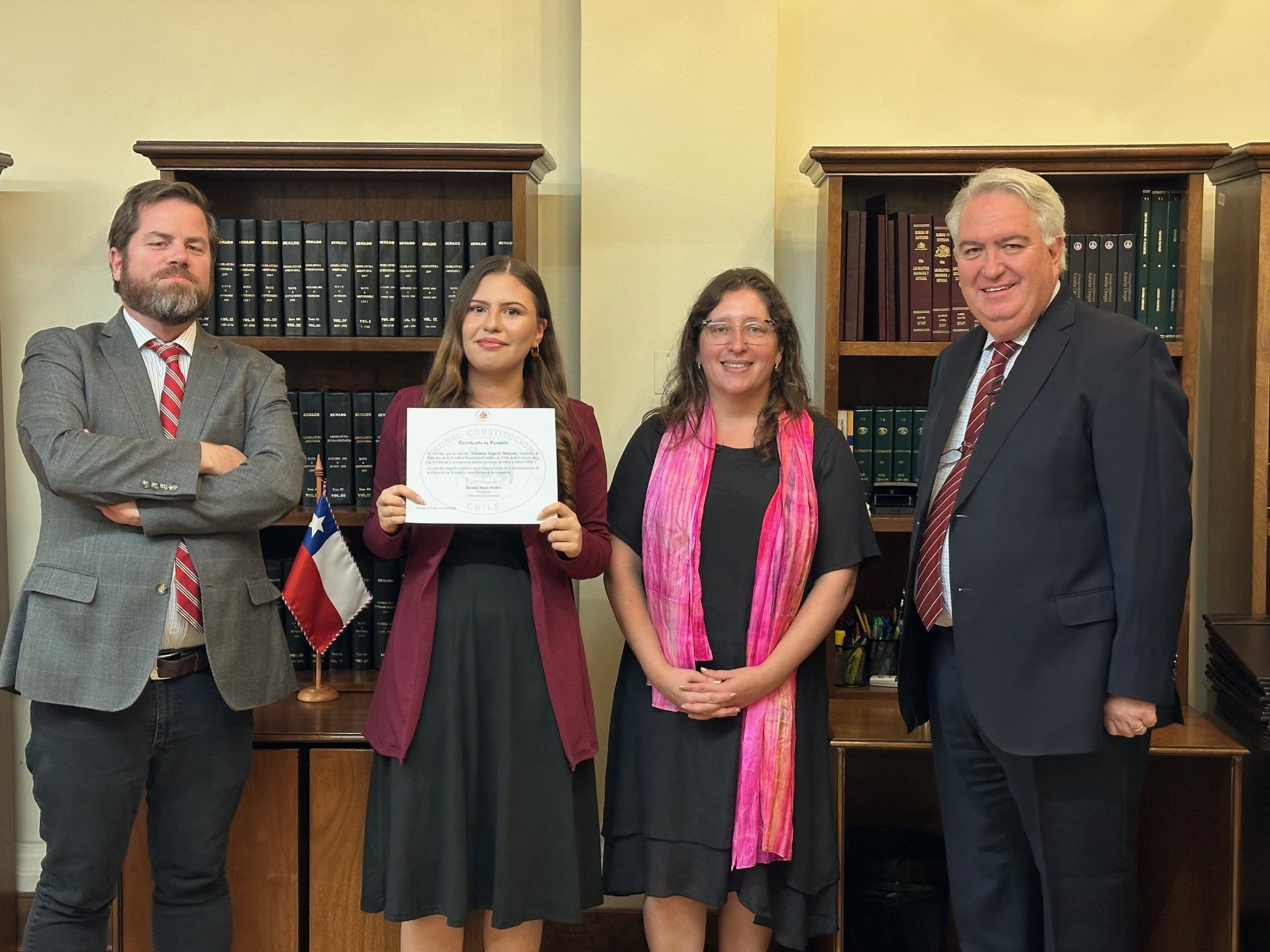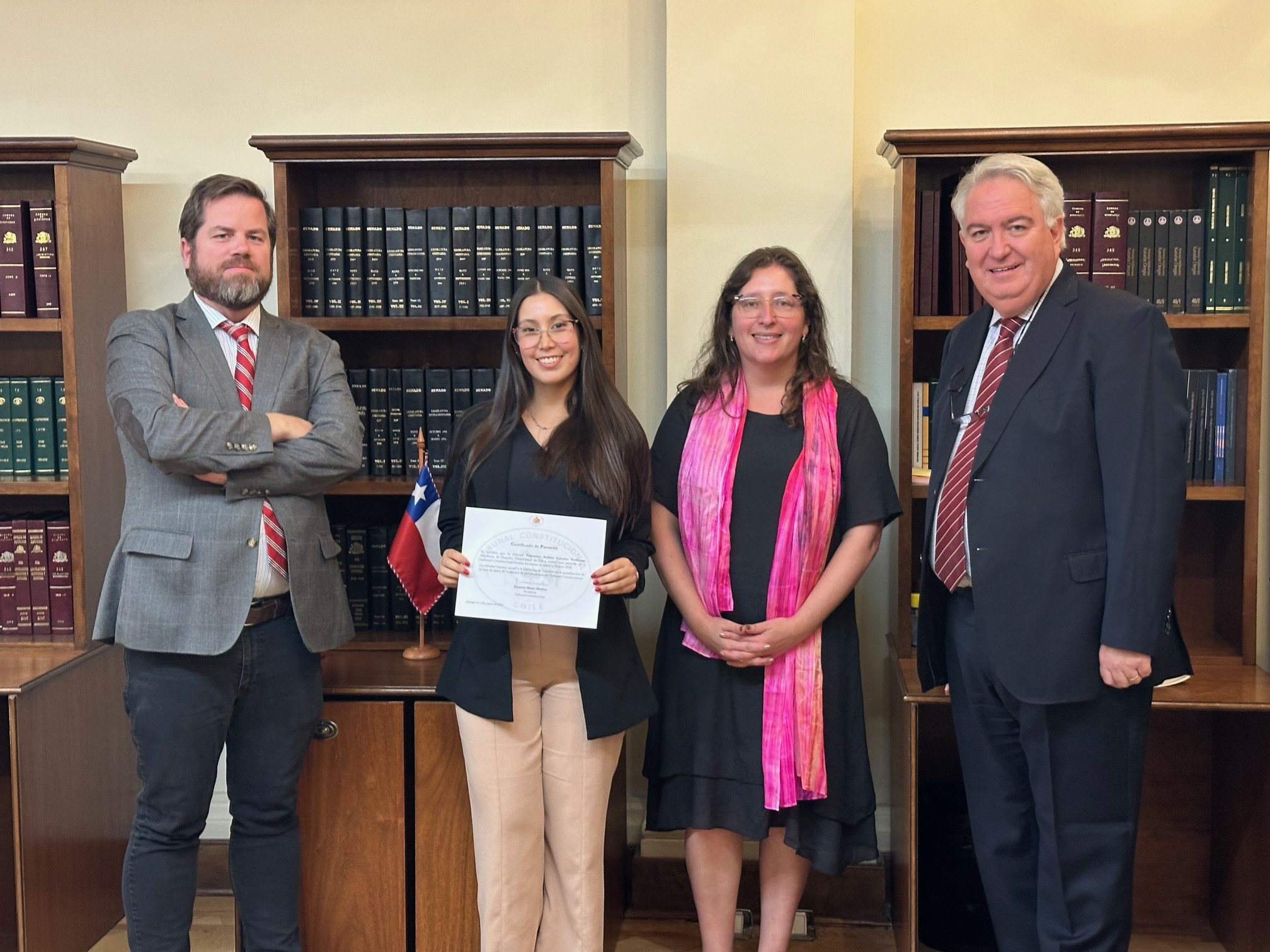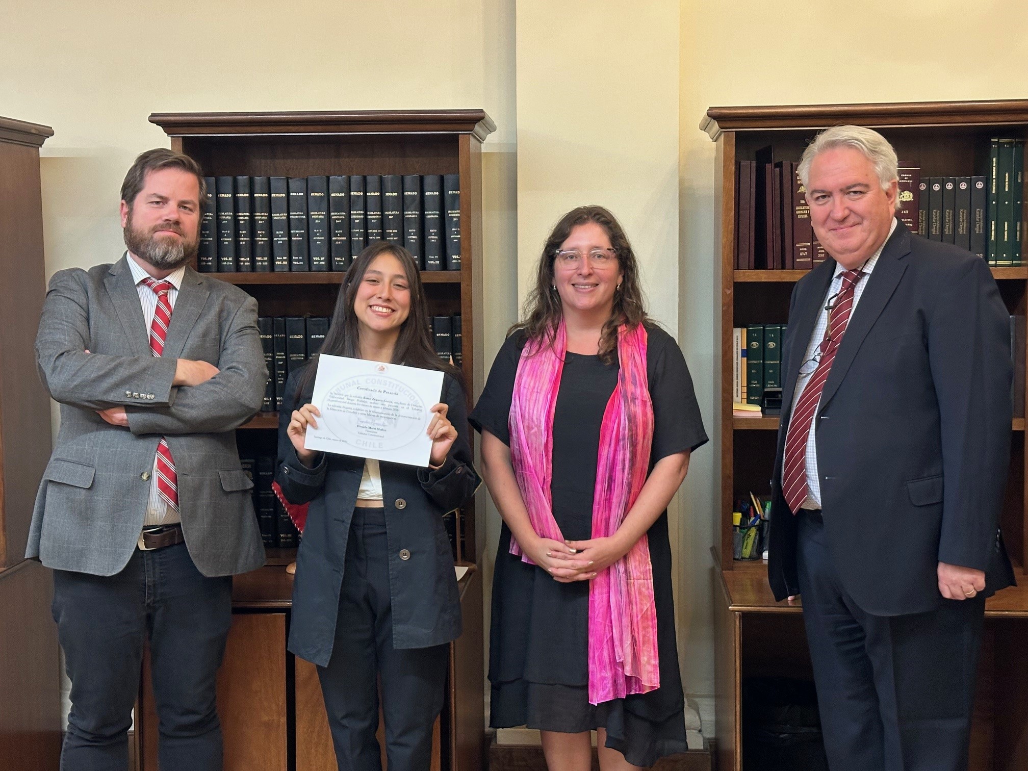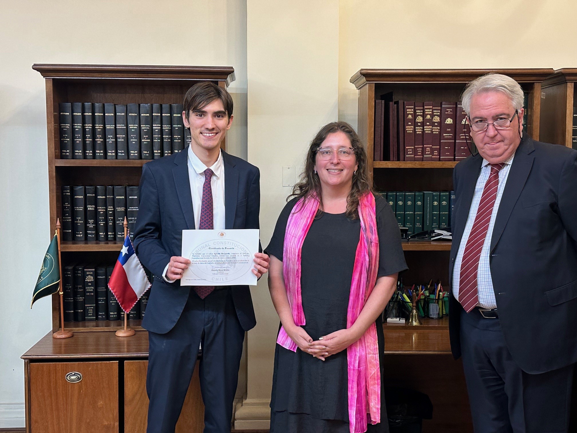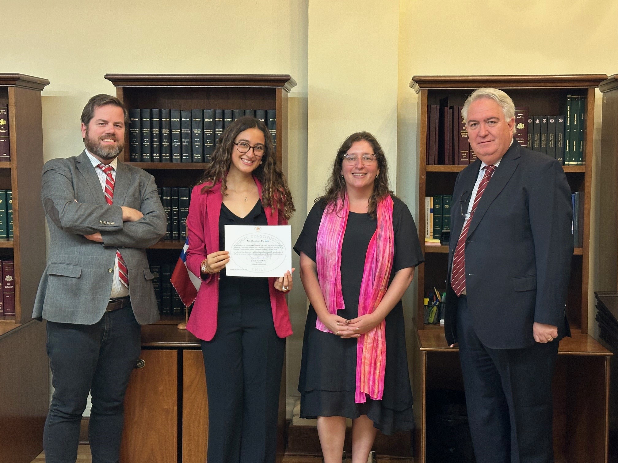 En representación de los estudiantes, Adrián Cabezas, de la Universidad Austral de Chile (Región de Los Ríos), destacó que la modalidad virtual es una puerta de acceso fundamental para quienes residen fuera de la capital, permitiéndoles profundizar en procedimientos constitucionales y análisis de inadmisibilidad. Karen Zegarra, de la Universidad Diego Portales, resaltó el ambiente integrador y la comunicación constante entre los niveles jerárquicos de la Institución, lo que permitió un desarrollo profesional fluido. Finalmente, Ana Córdoba, egresada de la Universidad Adolfo Ibáñez y residente de Limache, señaló que la pasantía le permitió mantener una disciplina de trabajo activa durante el verano, sirviendo como preparación para sus próximos desafíos académicos y profesionales en el área del Derecho Público.
